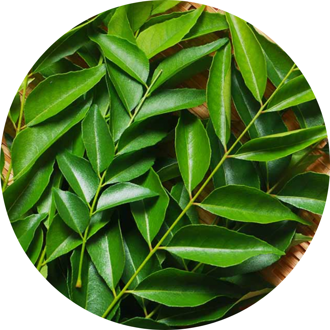Revered in Ayurvedic medicine, curry leaves are rich in beta-carotene, proteins, amino acids, and antioxidants, which promote hair growth and strengthen follicles, reducing hair fall and thinning. High in vitamin B and iron, they help maintain natural hair pigment and prevent premature graying. Their antifungal and antibacterial properties fight dandruff and scalp infections, while their moisturizing properties soothe the scalp, reduce dryness, and add natural shine. Regular use results in stronger, healthier, and more vibrant hair.
